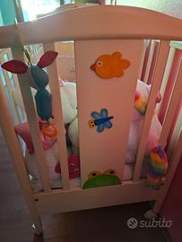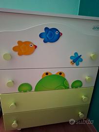 Vendesi cameretta completa della Azur: armadio, culla con sponde, fasciatoio con vaschetta per bagnetto ( removibile), mensola, lampadario, appendiabiti e abat jour da comodino.