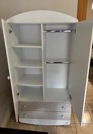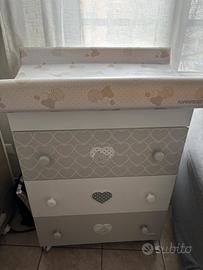 Vendesi cameretta completa Lovely della Foppapedretti (come da foto allegate), usata ma veramente ben tenuta, competa di: 1. armadio in legno a due ante Lovely di Foppapedretti, con due spaziosi cassetti, ampi vani con piani regolabili e due barre appendiabiti. Le due ante sono decorate con tre dolci cuori in rilievo che racchiudono un tenero orsetto, motivo che caratterizza tutta la collezione. Dimensioni: H 180 | P 50 | L 90 cm. 2. Lettino divanetto in legno Lovely con una sponda regolabile a due altezze, per facilitare il riordino del lettino, che può anche essere abbassata a scomparsa per trasformarlo in un comodo divanetto. Anche la rete è regolabile a due altezze, per consentire un pratico uso anche quando il bimbo è neonato. E' caratterizzato da forme arrotondate che esprimono un'eleganza senza tempo, con tonalità trendy all'insegna del bianco e del grigio. Una delle testate del lettino ha decorazioni con teneri cuori in rilievo che racchiudono un dolcissimo orsetto. Il lettino ha un ampio cassetto inferiore, suddiviso in due scomparti, e ruote gommate antigraffio, con sistema frenante, per facilitare gli spostamenti. Dimensioni aperto cm: H 108 | P 73 | L 131 3. bagnetto fasciatoio in legno Lovely di Foppapedretti trasformabile in comoda cassettiera. È dotato di vaschetta per il bagnetto estraibile, piano ribaltabile con sistema di sicurezza ammortizzato e pratico materassino (appena sostituito, nuovo!). Dimensioni aperto cm: H 131 | P 50 | L 69 Dimensioni chiuso cm: H 89 | P 47 | L 69 Caratterizzato da tonalità all’insegna del bianco e grigio, sui tre ampi cassetti ha decorazioni con teneri cuori che racchiudono un dolcissimo orsetto. Ha ruote gommate antigraffio, con sistema frenante, per facilitare gli spostamenti. Prezzo 650 euro solo con ritiro e trasporto a mano a cura dell'acquirente su Milano, in zona Bande Nere (NON SPEDISCO, PREMUNITEVI DI AUTO/VAN). Valuto eventualmente anche acquisti singoli con trattative private e prezzi congrui.