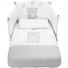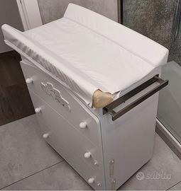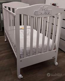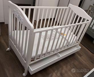 Cameretta della linea Erbesi modello Tippy, perfette condizioni a parte usura sul fasciatoio come mostrato in foto. Composta da (possibilità di vendita componenti separate): – Lettino Tippy bianco; – Fasciatoio/Bagnetto Tippy bianco; – Set tessile Birba Pali con piumone - paracolpi - federa; Realizzata con i tipici tessuti cotone 100% nella tendenza chic tutto rigorosamente Made in Italy Nel Lettino è possibile togliere una sponda per agevolare i movimenti dei bambini che riescono a salire e scendere da soli dal lettino , ma bisogna fissare l’altra sponda con le apposite viti in dotazione, per dare maggiore sicurezza alla struttura del lettino. La misure del materasso per i lettini Erbesi sono: cm (125 x 60) – (125 x 63). Costo nuovo 470€