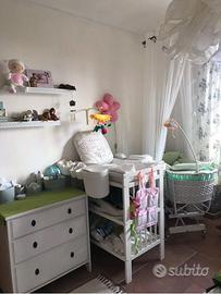 Per trasloco, vendo cameretta completa per bambino o bambina. Mobili bianchi usati ma in ottimo stato che possono accompagnare ancora la crescita di uno o più bambini. Comprende: fasciatoio gulliver ikea (completo di materassino per fasciatoio e 2 set di pratici contenitori in plastica ikea come da foto) + cassettiera bianca ikea con 3 comodi cassetti + piccola libreria Hensvik Ikea che volendo si può sovrapporre alla cassettiera per creare un mobile più alto. Vendo inoltre separatamente una culla bianca in vimini originale vintage che ho restaurato personalmente e che va benissimo per i primi mesi, ha le ruote e si può facilmente spostare o cullare avanti e indietro per far addormentare il piccolo. Da ritirare in Torino, piano terra.
