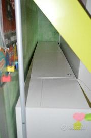 Quasi regalata bellissima cameretta bimbi da 3 a 10 anni , completa con letto soppalcato, contenitori porta oggetti fatti a scaletta cassettiera , mobile vestiti 2 ante piu libreria bellissima piu pensili solo 200 euro ( smontaggio e trasporto a proprio carico )