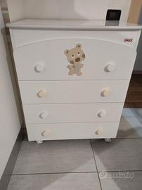 Vendo cameretta Picci composta da: - lettino con sbarre (su ruote) - cassettiera abbinata - cassetto sotto al lettino - 2 materassi inclusi Condizioni buone, sempre tenuta in casa. Non è presente il fasciatoio/vaschetta. Ideale per chi cerca una soluzione completa senza spendere cifre alte. Prezzo trattabile. Ritiro a mano. Visionabile e disponibile per ritiro immediato.