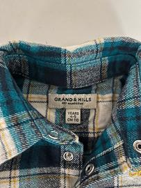 Camicia bambino 4/5 anni 110 cm a quadri con bottoni a clip manica lunga in cotone con colletto. invernale ottima per gite e tempo libero