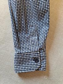 Colori: fantasia a piccoli cerchi bianchi con puntino blu interno su fondo blu scuro.