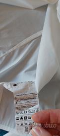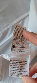 in cotone elasticizzato leggermente sciancrata logo in tinta sul cuore, doppio bottone sulla manica, perfetta per cerimonie, indossata una volta sola e poi lavata e stirata in lavanderia. abbinamento perfetto con giacca elegante benetton e papillon rosso