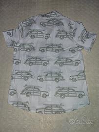 Camicia da bambino a maniche corte in cotone H&M 6-7 anni 116 cm con stampa di macchine verdi su sfondo bianco. Come nuova!