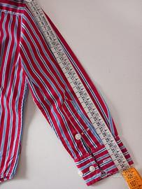 Camicia di cotone di un bel rosso vivace con righe blu.
