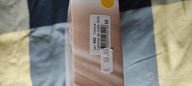Pois bianchi sul corpetto, elastico sotto al seno, regolabile con un nastrino. Maniche con elastico leggermente a sbuffo. Colore tortora. 95% viscosa, elasticizzata. Con scatola originale. Prodotto italiano. Dominam pharm. taglia m
