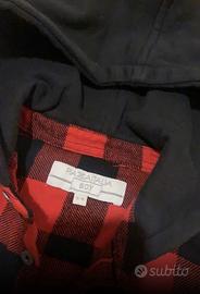 Camicia manica lunga in cotone pesante,flanella. A quadri rosso/nero, con cappuccio. taglia 5-6 anni
