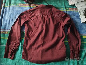 Elegante camicia Manuel Ritz uomo color bordeaux, vestibilità sartoriale con logo ricamato. 11-12anni. Cotone