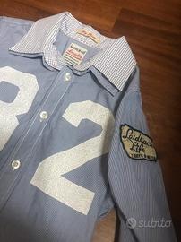 Camicia Scotch originale taglia 8 anni ! Da vero figo !!' Camicia a righine azzurre e bianche con stampe e doppio colletto Slim