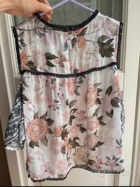 Bellissima T shirt camicia elegante a fiori e farfalle. Prezzo fisso. Prezzo d'origine 128 euro come da foto.
