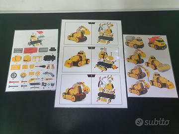 Include un telaio per auto e un cacciavite, i bambini possono assemblare autocarro ribaltabile, escavatore, bulldozer, rullo compressore, carrello d'irrigazione, trapano, fresa.
