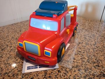 Colorata e divertente, questa bisarca consente alle automobiline di passare da un piano all’altro grazie ad un elevatore posto sulla cabina di guida, nascosto dal tetto blu (vedi ultima foto) facilmente azionabile tramite una leva gialla posta sulla fiancata del camion.