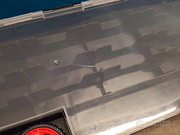 Capacità:Può contenere numerose macchinine (scala 1:64 tipo Hot Wheels) su entrambi i lati.