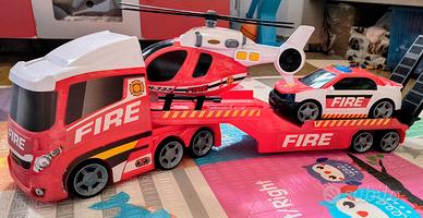 Rapid Wheels Trasportatore auto vigili del fuoco + auto ed elicottero + luci e suoni (elicottero)