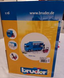 COMPOSIZIONE BRUDER: CAMION MAN TGA COD. 02782 (L: 520 / 175 mm) CON MULETTO E PALLET + CONTAINER TELONATO CON STAMPELLE COD. 03900 (L:352 mm)