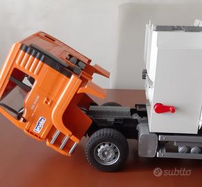 camion dell'immondizie della Bruder, grande, perfettamente funzionante completo di due bidoni, come nuovo