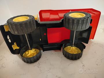 camion giocattolo in plastica rossa e gialla, per bambini, perfetto per i giochi con la sabbia. usato un po' di volte ma in buone condizioni