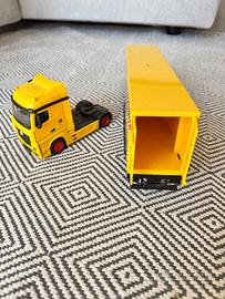 Vendo imponente modellino del camion Esselunga "Trionfo di Freschezza", basato sulla motrice Mercedes-Benz Actros. Con una lunghezza totale di 39 cm, è una riproduzione fedele e di grandi dimensioni dei celebri mezzi della flotta Esselunga. Caratteristiche principali: • Dimensioni Extra: Lunghezza totale di ben 39 cm (motrice + rimorchio). • Dettagli Realistici: Motrice gialla Mercedes-Benz con numero di flotta "39" e rimorchio con l'iconica grafica Esselunga e la storica "S" rossa. • Componenti Mobili: * Il rimorchio è sganciabile dalla motrice. • Il portellone posteriore è apribile per caricare e scaricare "merce" o piccoli oggetti. • Materiali: Plastica resistente di alta qualità, ideale sia per il gioco che per il collezionismo. Stato dell'oggetto: • Condizioni: Usato in ottimo stato. Le grafiche sono perfettamente leggibili e non sbiadite. • Meccanismi di aggancio e apertura porte perfettamente funzionanti. • Ruote gommate/plasticate integre e scorrevoli.