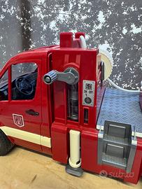comprensivo di scala girevole, pompa e modulo luci e suoni, Il veicolo è dotato di un adattatore per gli attrezzi anteriori, di un cassone di carico, di un vano portaoggetti laterale e di una manovella per arrotolare il tubo dell'acqua