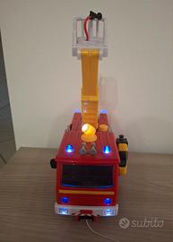 Camion pompieri con luci, suoni, con gru mobile con pompa idrante funzionante con serbatoio d'acqua da riempire, walkie talkie funzionante, attrezzi vari. In ottimo stato, pile incluse. Disponibili anche personaggi camion Venus e quad Jupiter.