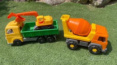 Camion ruspa e betoniera ben tenuti. Solo la betoniera ha un segno nella parte inferiore.