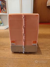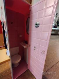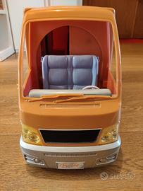 Camper Barbie, con luci e accensione da chiave su cruscotto, apribile con cucina, soggiorno, bagno e piscina con luci e musica party. Qualche difetto sulle plastiche, ma nell'insieme è funzionale.