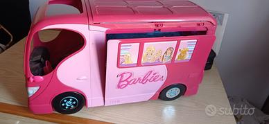 Camper Barbie con piscina, bagno con doccia, letto, cucina, zona pranzo e amaca