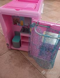 Si vende fantastico camper barbie 3 in 1 completo di scatola originale, usato praticamente 5/6 volte. Marca solo la vaschetta che fa da piscina e le 2 copertine causa smarrimento. In compenso insieme è compresa una borsetta piena di accessori nuova e mai aperta (rosa presente nella prima foto) Più un beauty presente nelle ultime 2 foto. Preferibile ritito a mano oppure spedizione in autonomia. Per info contattatemi
