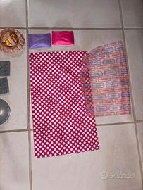 camper delle barbie, rosa, con molti accessori senza bambole.