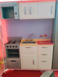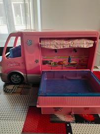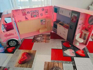 vendesi camper di Barbie con luci e suoni. suoni: - accensione motore - suono clacson - suono forno - musica in piscina e luci colorate. No spedizione solo consegna a mano.