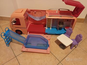 Camper Barbie "dei sogni", cm58x20, richiudibile, colore rosa, con accessori originali, tenuto perfettamente.
