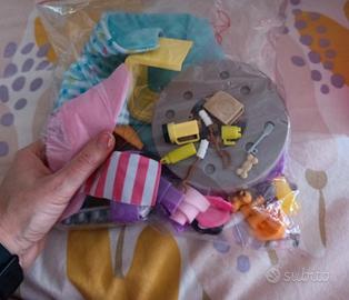 Camper di Barbie abbastanza usato e sicuramente non completo di tutti i pezzi. Scatola originale. Vendo perché mia figlia non lo vuole più. Non è rotto, ha solo gli adesivi staccati. La piscina e lo scivolo sono intatti. Dentro ha un mobile. Ho messo tutti i pezzi in nostro possesso che sono usciti a suo tempo nel sacchetto che vedete. Solo ritiro a domicilio (Cologno Monzese).