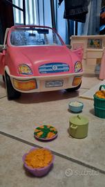 Vendo un bellissimo e iconico camper di Barbie, un modello vintage dei primi anni 2000 (simile al modello "Holiday Camper" o "Pop-Up Camper" del 2001/2006). Questo fantastico veicolo si trasforma per rivelare diverse aree gioco, come una cucina, un bagno e un'area salotto, perfette per innumerevoli avventure.