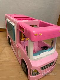 Camper Barbie completo di tutti gli accessori (barca, tavolino e sedie, cucina, …).
