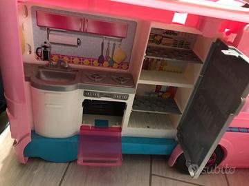 Camper con diversi accessori visibili in foto (Barbie non compresa), richiudibile come si vede nell'ultima foto.