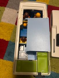 Camper PlayMobil originale, in condizioni perfette, con tutti i suoi accessori e i suoi personaggi. Il gioco é usato.