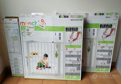 Vendo due canceleltti di sicurezza Munchkin Stair Gate Maxi Secure Toddler & Baby n.2 Dimensioni 76-82cm - prezzo 20 € caduno n. 1 Estensione Dimensioni 14 cm prezzo 10 € Molto ben tenuti, usati poco, con confezione originale