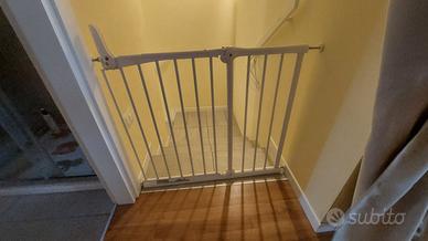 Vendo cancelletto di sicurezza in metallo bianco, ideale per scale o passaggi, in ottime condizioni e perfettamente funzionante. Molto robusto e facile da installare. • Larghezza regolabile: copre aperture da un minimo di 85 cm fino a un massimo di 100 cm. • installazione a pressione (non serve bucare il muro), stabile e sicuro. • Apertura: con maniglia e blocco di sicurezza (difficile da aprire per i più piccoli). • perfetto sia per proteggere i bambini dalle scale, sia per delimitare aree della casa per gli animali domestici. Consegna a mano zona Padova-mestre-Rovigo