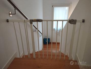 Vendo cancelletto di sicurezza Hauck per bambini e piccoli cani, fissaggio a pressione senza fori, in metallo bianco, può essere regolato da 70 a 90 cm