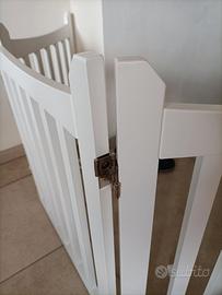 In legno laccato bianco! Usato poche settimane per proteggere passaggio del neonato verso le scale e sostituito subito dopo da una porta! Lunghezza totale poco più di 150cm, lunghezza di ogni pezzo, circa 50 cm ! Compreso di ganci per tenerlo stabile N.P. 60€ Ritiro a mano Azzate (VA) e limitrofi