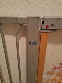 Cancelletto Pali per bambini con due prolunghe laterali e simpatico disegno al centro. Usato ma molto ben tenuto!