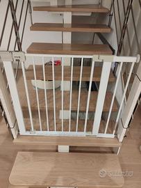 Vendo cancelletto di sicurezza per bambini con prolunga da 14 cm marca Safety. Questo cancelletto si chiude automaticamente è adatto ad aperture che vanno dai 73 cm agli 80 cm. Con la prolunga lo spazio coperto è maggiore.