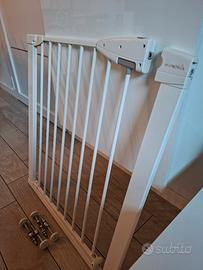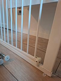 Cancellino di sicurezza per bambini larghezza cancellino 70 cm piu prolunghe laterali per il fissaggio a muro (manicotti in plastica per un appoggio comodo e sicuro) altezza 75 cm , e dotato di blocco sicurezza per la chiusura del cancellino. quasi nuovo , funzionante. prezzo trattabile no perditempo