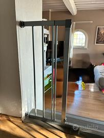 Cancello sicurezza Hauck stop N safe 2 + 2 estensori da 21 cm per un apertura da 96-120 cm chiusura manuale, facile da montare perche l’installazione è a pressione senza fori, colore grigio chiaro. Ottime condizioni. Confezione originale con istruzioni di montaggio