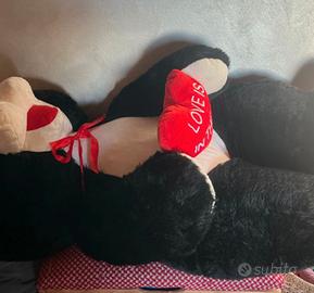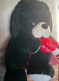 Cane nero gigante peluche morbidoso alto 120 cm molto bello von cuore imbottito rosso tenuto come nuovo