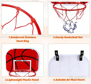 Vendo CANESTRO BASKET PER BAMBINI, con cerchio in acciaio. Si può appendere facilmente, grazie ai due ganci posteriori, così come da immagini. Non spedisco