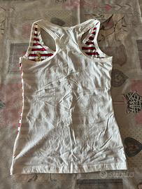 Vendo canotta strisce bianco/rosso, taglia M e pantaloni rosa, taglia 14 a 10€