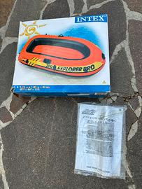 Nella sua scatola originale. Il bianco che si vede sulla superficie del canotto è borotalco messo per preservare la gomma.